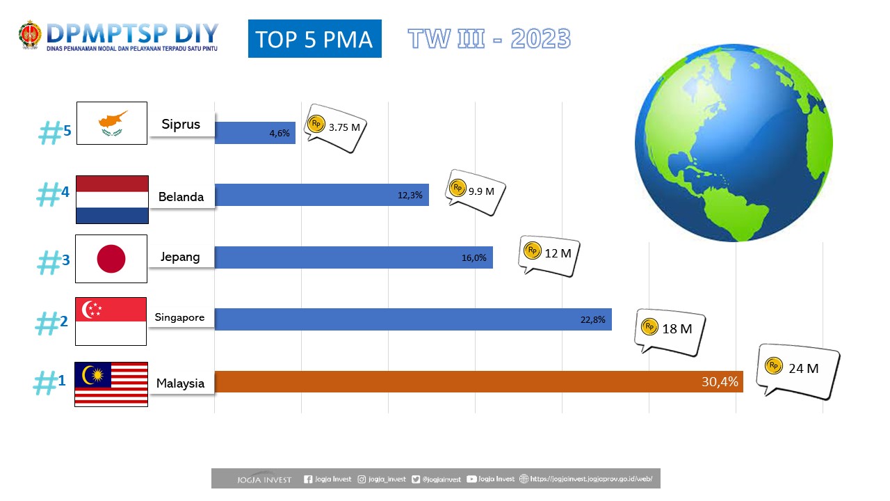 Data Top 5 Penanaman Modal Asing (PMA) di DIY Triwulan III Tahun 2023Admin DPMPTSP DIY2024-02-01T15:25:53+07:00Kamis, 1 Februari 2024|